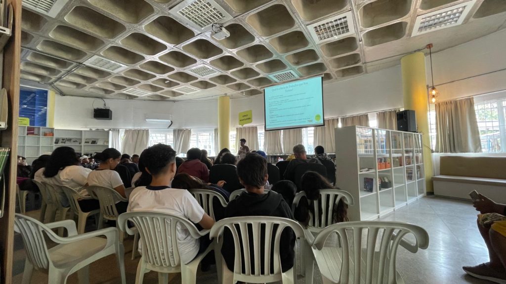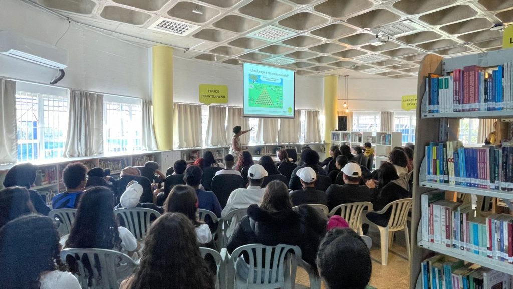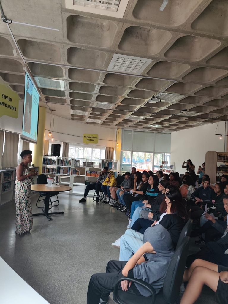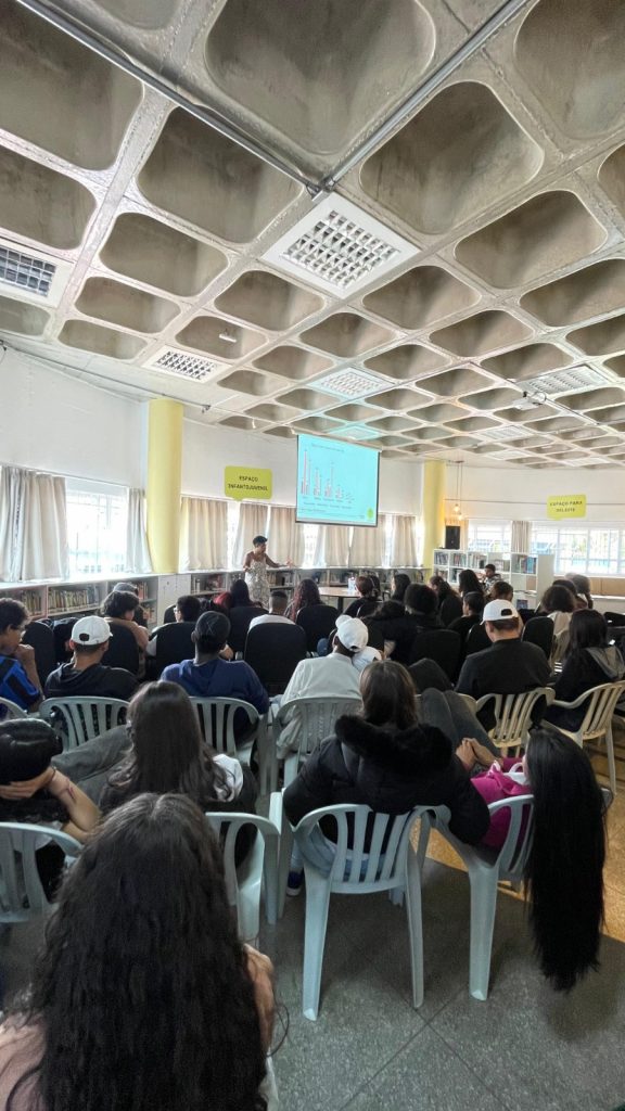 No dia 19 de setembro, a convite da Biblioteca Thais Matarazzo Cantero (CEU), a educadora ambiental do Parque proferiu uma palestra para estudantes de 7º e 8º anos da Escola Municipal Ensino Fundamental Maria Aparecida de Souza Campos.