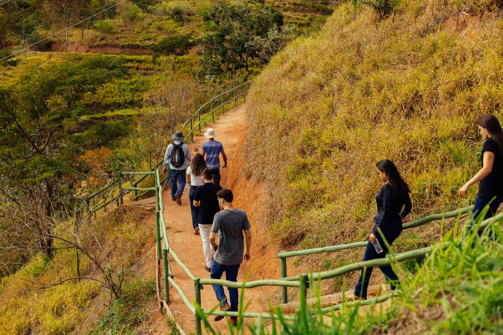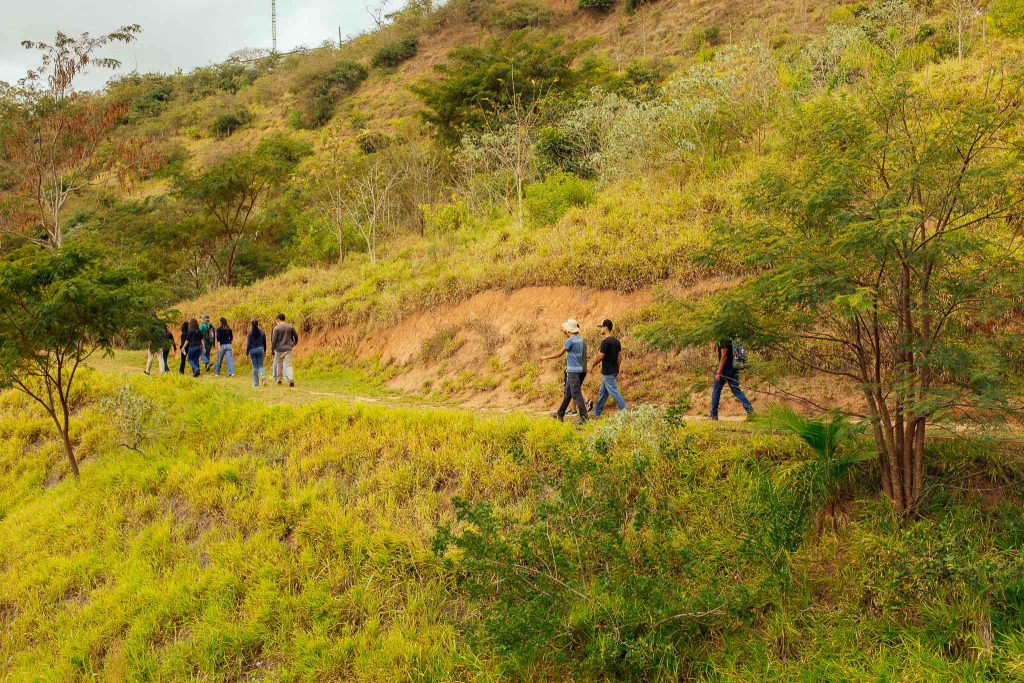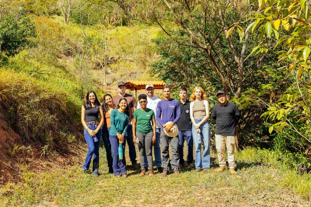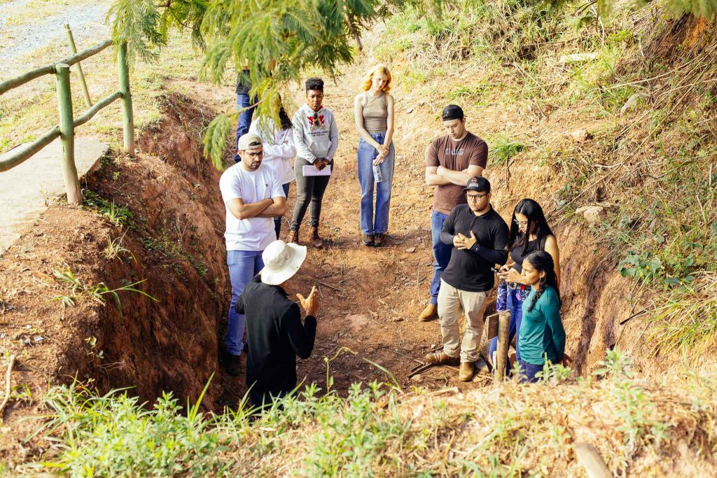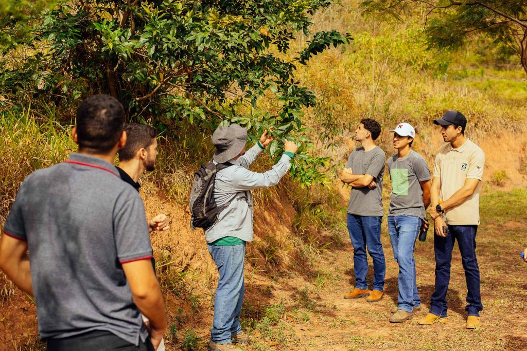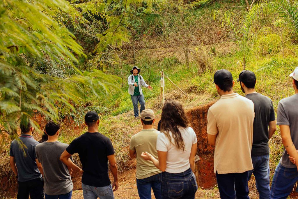 Caminharam pelas trilhas para conhecer de perto as práticas conservacionistas, dentre elas as técnicas mecânicas iniciais para reduzir processos erosivos: caixas de contenção, terraços em curva de nível e paliçadas. Conversaram também sobre as técnicas edáficas utilizadas para a correção do solo, com calcário, fertilizantes minerais, composto orgânico e adubação verde. E para complementar, as técnicas vegetativas aplicadas, como o plantio de mudas e sementes de espécies nativas através de plantio total, plantio de enriquecimento e regeneração natural assistida.