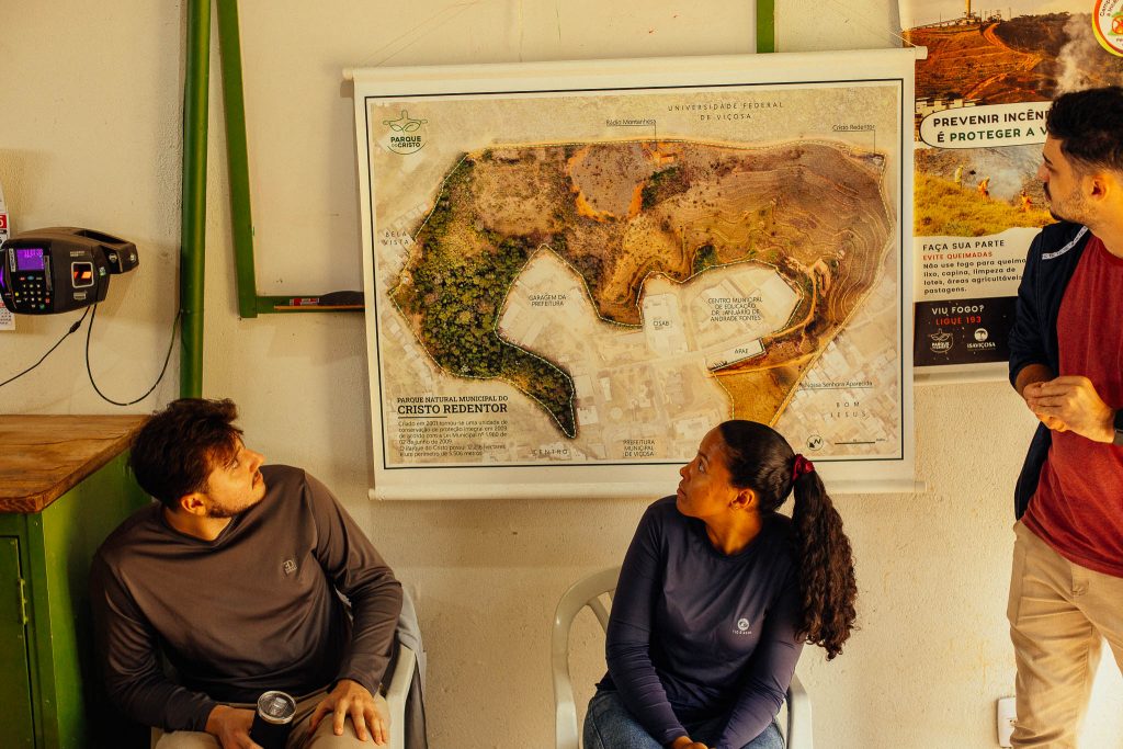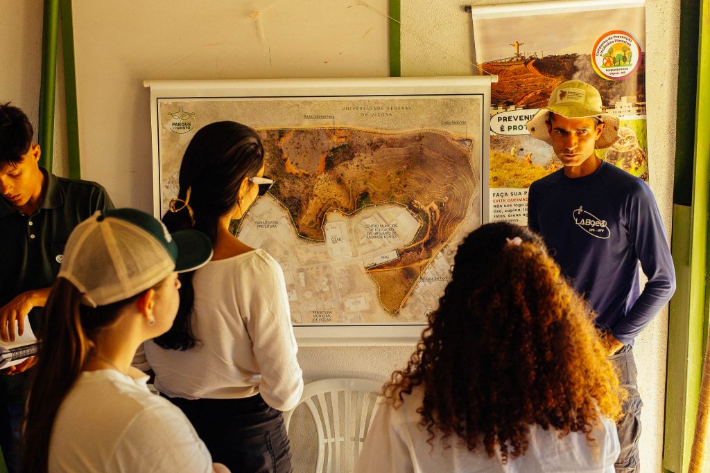 Durante a visita, os estudantes puderam aprender sobre os protocolos de monitoramento do solo e da vegetação em recuperação, além do Plano de Prevenção e Controle de Incêndios Florestais.