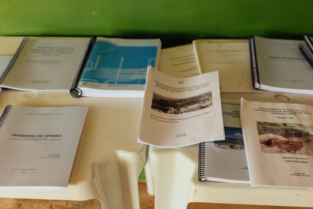 Visitaram a sede administrativa, onde conheceram documentos técnicos, ferramentas e equipamentos. Acessaram dados de monitoramento da perda de solo que demonstram a eficiência das técnicas aplicadas na recuperação e restauração ecológica da área.