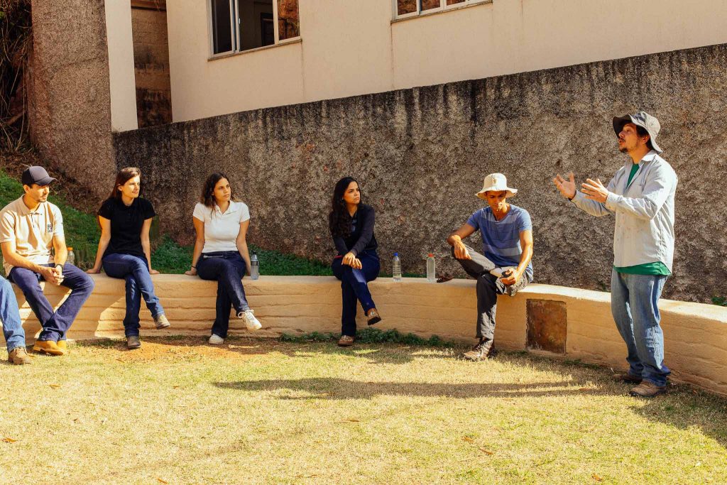 Caminharam pelas trilhas para conhecer de perto as práticas conservacionistas, dentre elas as técnicas mecânicas iniciais para reduzir processos erosivos: caixas de contenção, terraços em curva de nível e paliçadas. Conversaram também sobre as técnicas edáficas utilizadas para a correção do solo, com calcário, fertilizantes minerais, composto orgânico e adubação verde. E para complementar, as técnicas vegetativas aplicadas, como o plantio de mudas e sementes de espécies nativas através de plantio total, plantio de enriquecimento e regeneração natural assistida.