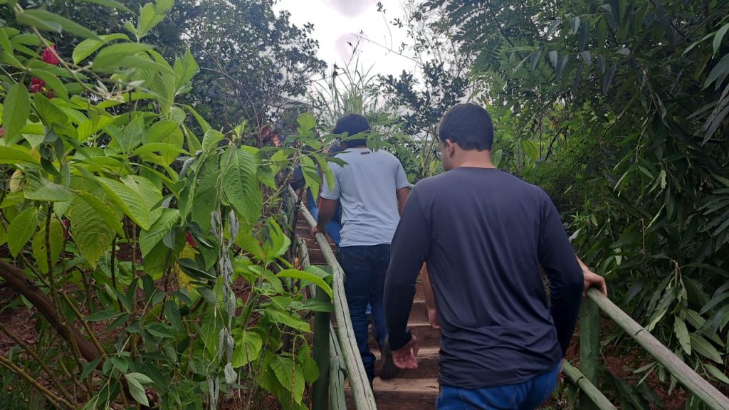 O técnico do ISAVIÇOSA e um dos responsáveis pelo Programa de Recuperação Ambiental do Parque do Cristo, Felipe Senna, acompanhou as turmas e apresentou as técnicas e tecnologias sociais implementadas na UC.