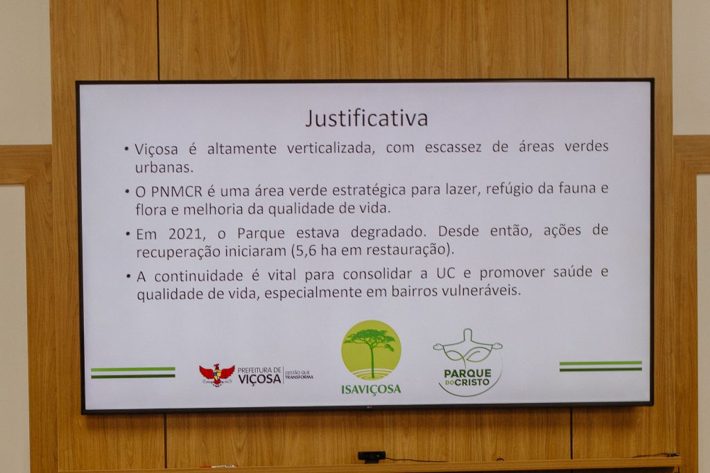 A equipe técnica do ISAVIÇOSA, que trabalha na implementação do plano de manejo do Parque do Cristo, esteve presente à Reunião Extraordinária do Conselho Municipal de Conservação e Desenvolvimento de Defesa do Meio Ambiente (CODEMA) de Viçosa, no último dia 15 de janeiro.