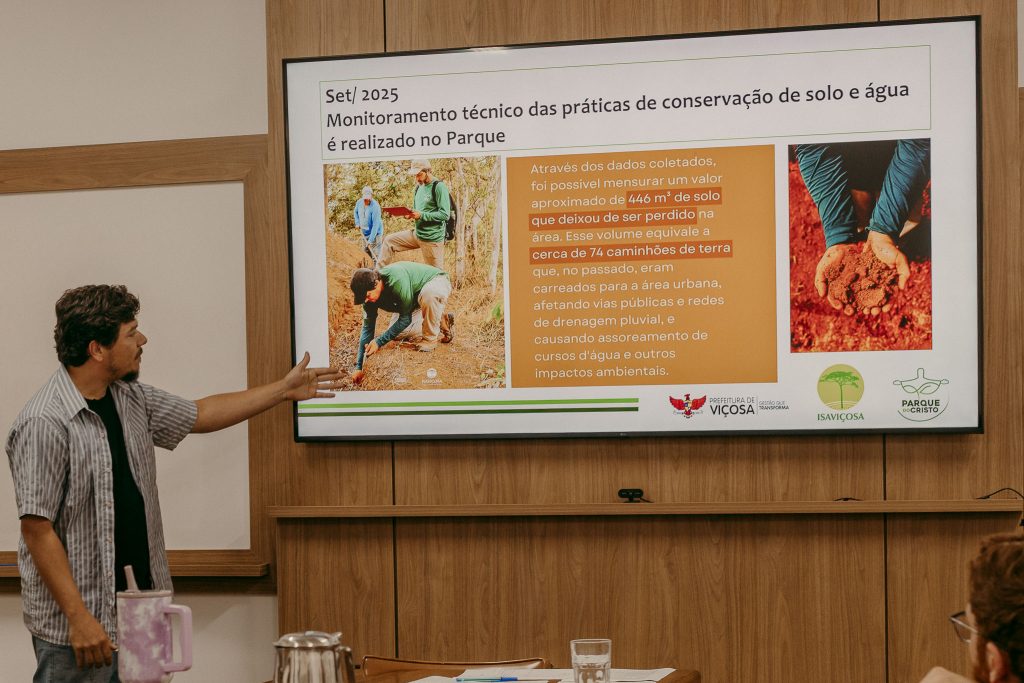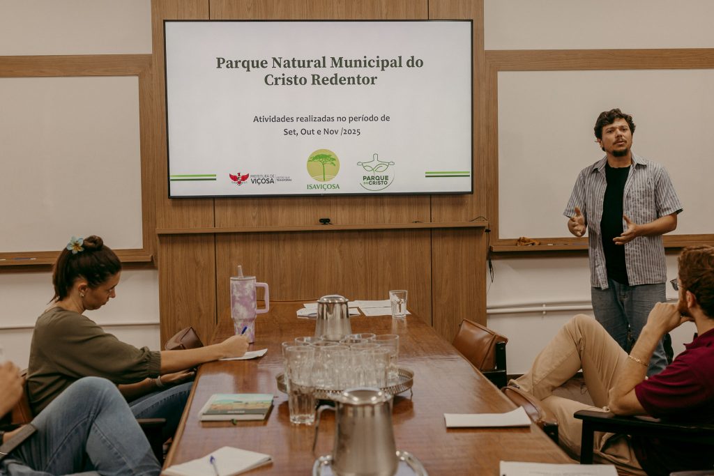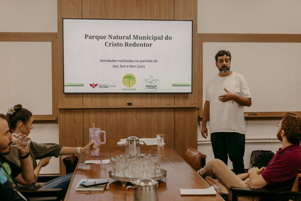 Na quinta-feira, 4 de dezembro de 2025, a equipe técnica do ISAVIÇOSA, que trabalha na implementação do Plano de Manejo do Parque Naturalde Municipal do Cristo Redentor, participou da reunião do conselho consultivo do Parque, hoje representado pelos membros do Conselho Municipal de Defesa e Conservação do Meio Ambiente (CODEMA) de Viçosa.