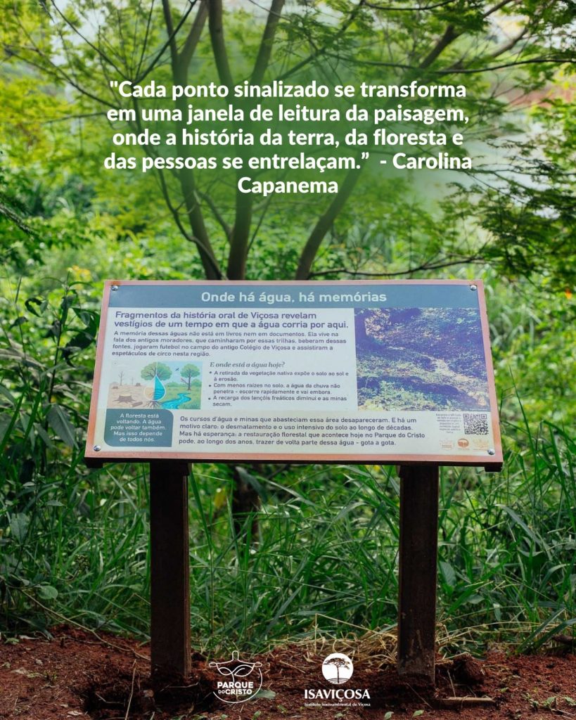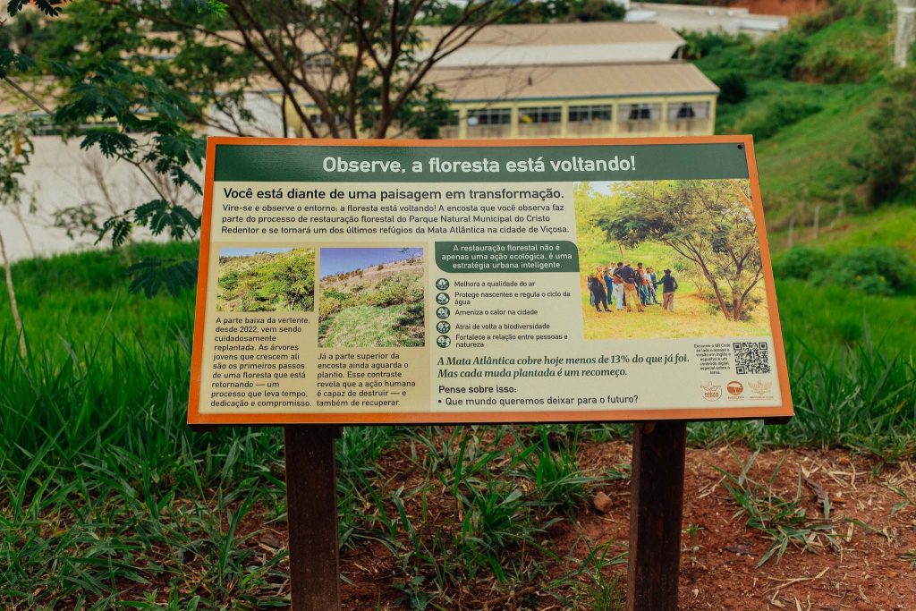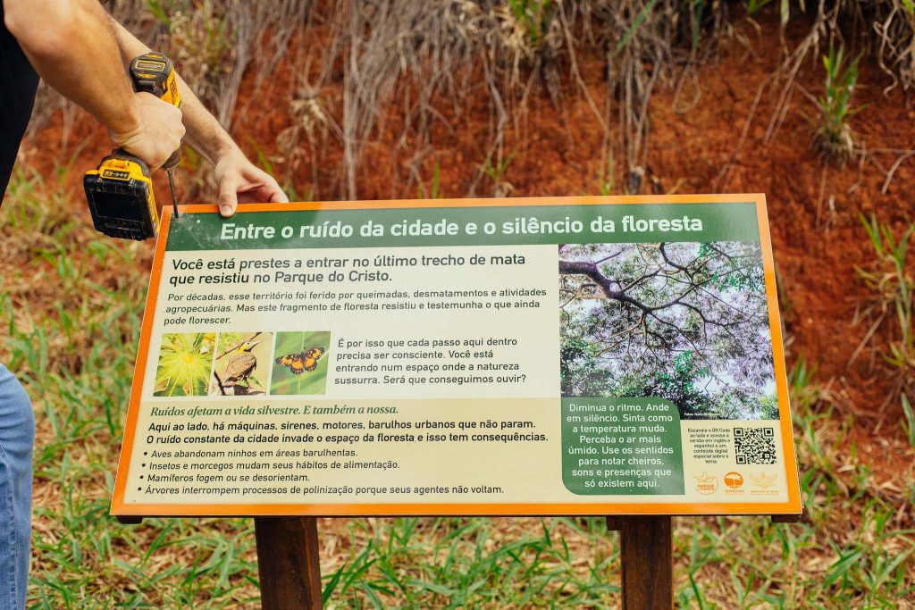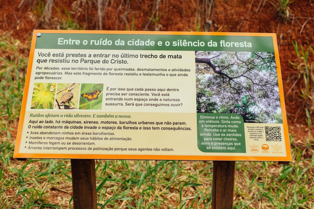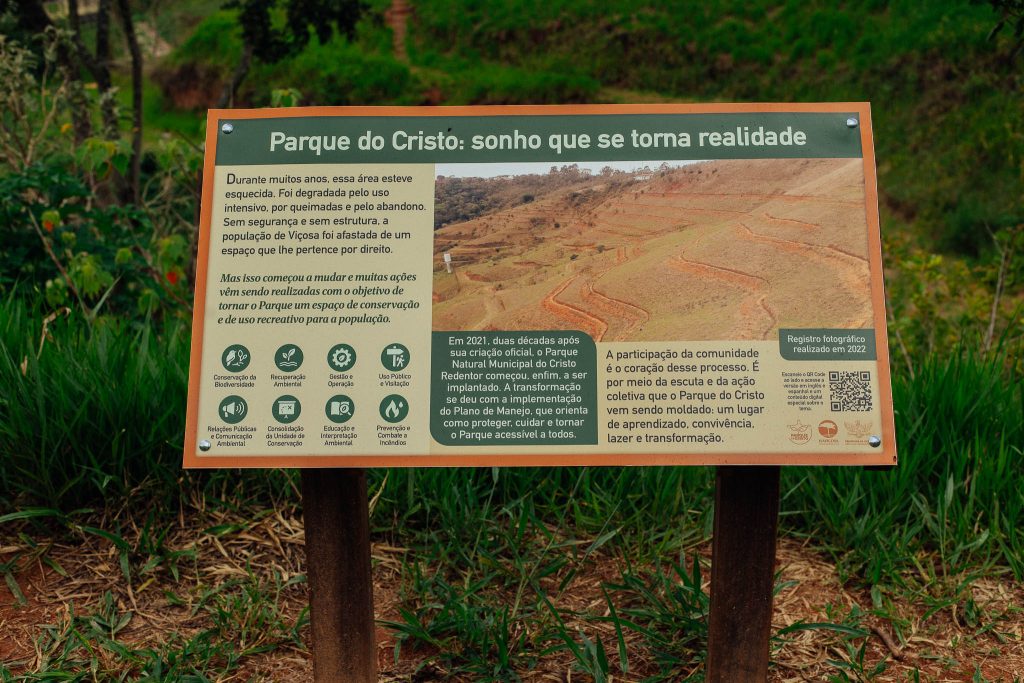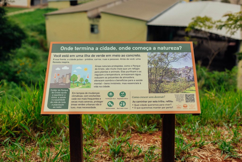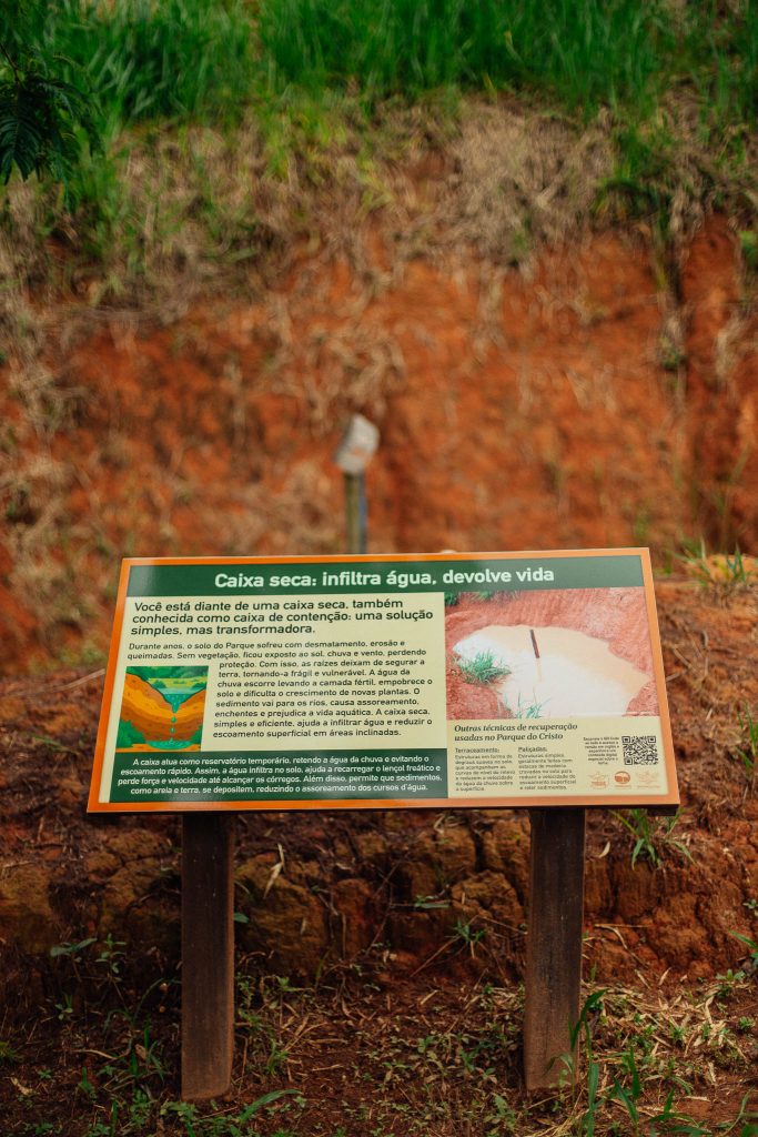 Com base no Programa de Educação e Interpretação Ambiental do Parque do Cristo, a disponibilização de placas informativas “visa criar oportunidades para a construção de experiências educativas significativas e inspiradoras de mudança de comportamento para uma sociedade ambientalmente mais ética e justa”.