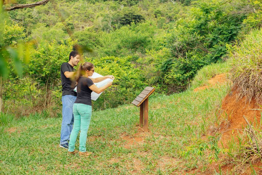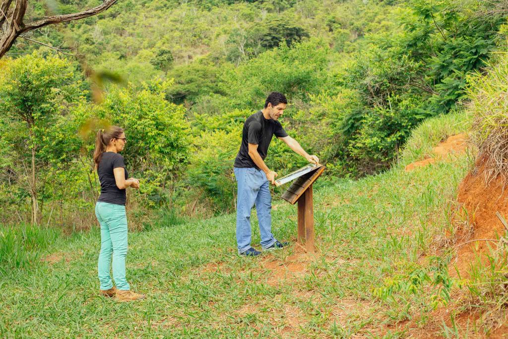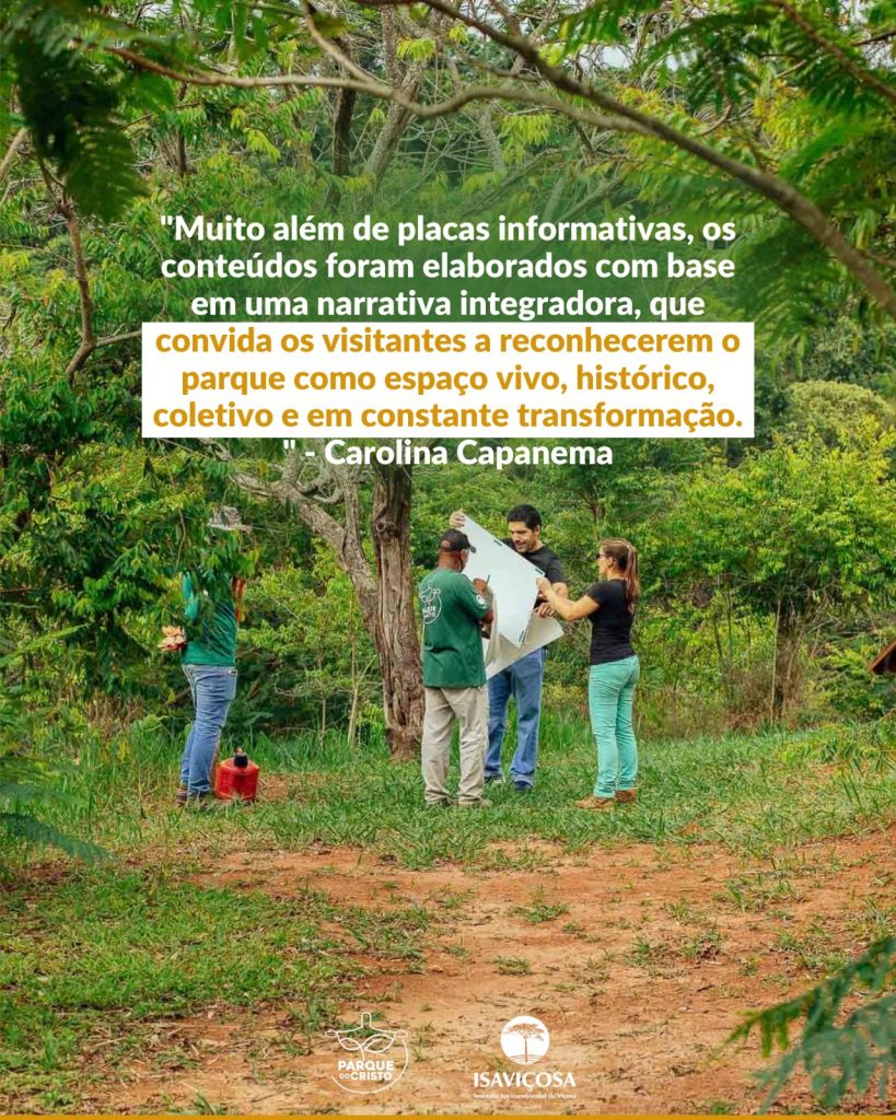 A elaboração do conteúdo, a organização das informações, o design e a produção das placas foram desenvolvidos por Carolina Capanema, Historiadora e Educadora Socioambiental, e por Herbert Pardini, Geógrafo e Turismólogo. Ambos são colaboradores do ISAVIÇOSA e trabalharam na implementação do Plano de Manejo da UC.
