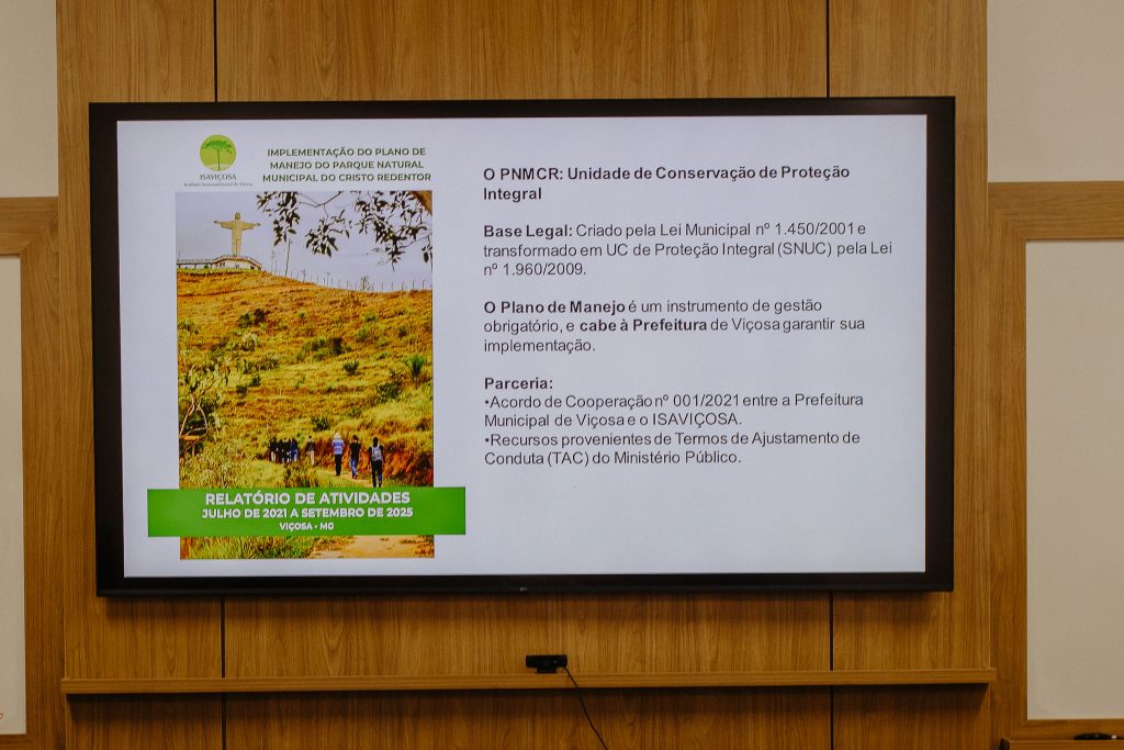 Conforme solicitado, todas as informações foram apresentadas de forma documental e presencial, através de apresentação conduzida pela equipe técnica do ISAVIÇOSA responsável pela implementação do plano de manejo do Parque do Cristo