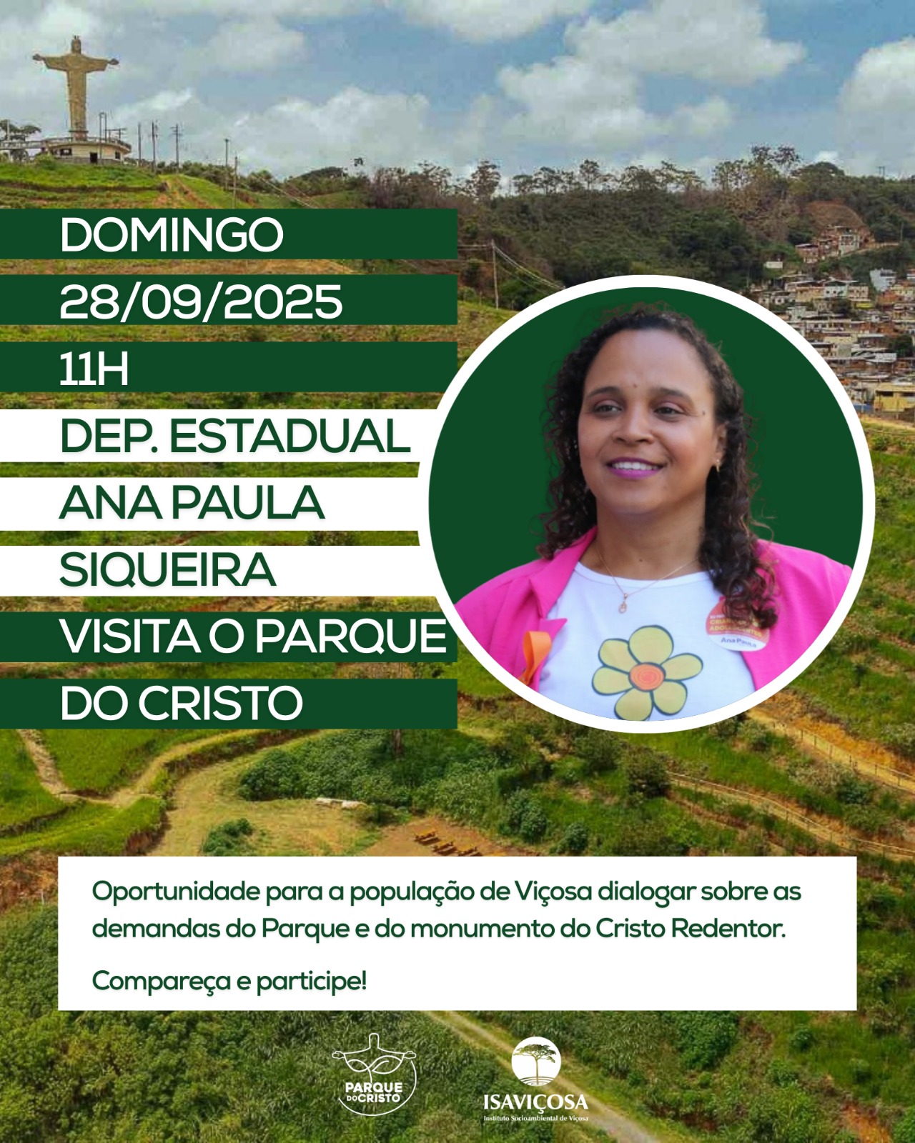 No dia 28/09/2025, próximo domingo, às 11h, o Parque do Cristo recebe a visita da Dep. Estadual Ana Paula Siqueira (REDE).