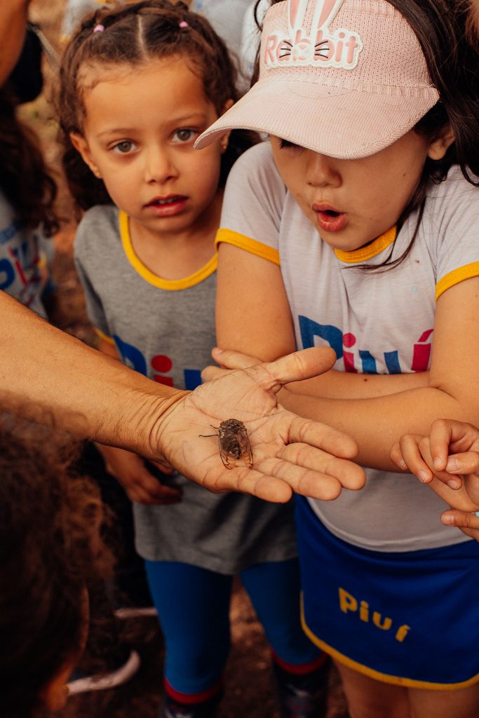 As crianças se mostraram bastante curiosas com as estruturas implementadas pelo Programa de Recuperação Ambiental e suas funcionalidades. Mas, o ponto alto da visita foi observar os insetos, a avefauna, os fungos e toda a biodiversidade presente no Parque!