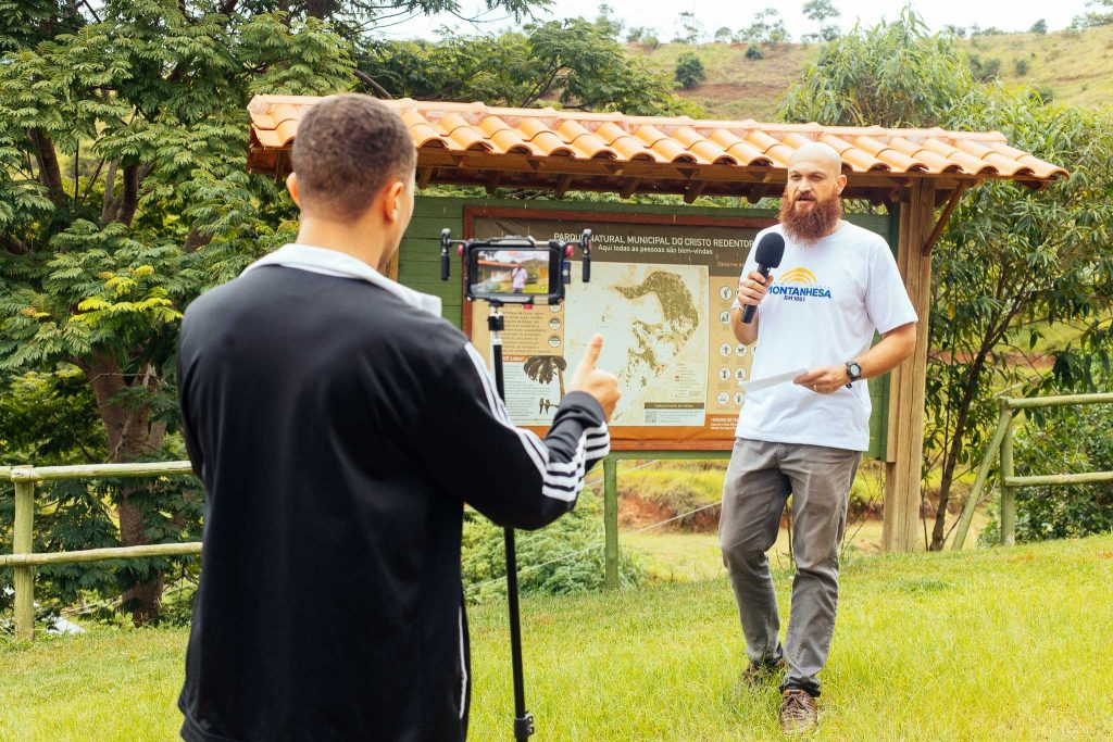 A equipe de reportagem da Rádio Montanhesa e Primeiro a Saber esteve no Parque do Cristo, no dia 4 de fevereiro, para gravar uma entrevista com membros da equipe do ISAVIÇOSA que trabalham na implementação do plano de manejo da Unidade de Conservação.